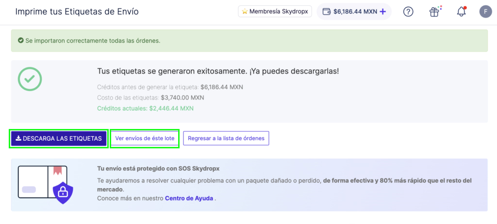 8. Haz clic en «Descarga las etiquetas» para descargar las guías de tus envíos.